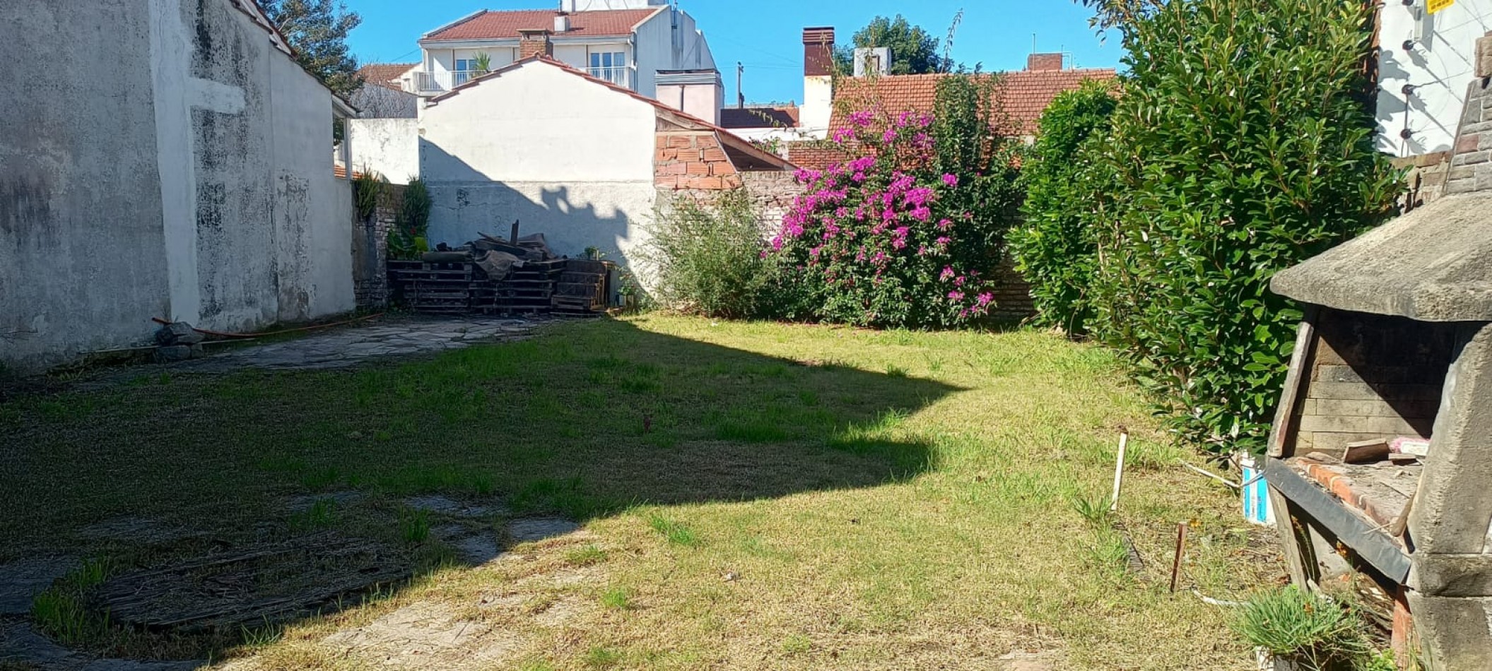 esta contruida sobre un lote de 10 x 30 Mts. en vereda de sol, con jasrdin adelante de 40 Mts. aprox. con entrada de auto, al ingresar a la propuiedad nos encontramos con un living. comedor con hogar con vista a la calle, cuento con distribucion tipica marplatense, un Dormitorio chico a la calle baño completo con ducha y el 2° dormitorio con vista al lavadero, que se encuentra cubierto, con cerramiento de aluminio con salida al parque, cocina comedor en L con vista al parque, Garage para un auto, el estado de la propiedad se encuentra original para refaccionar,
